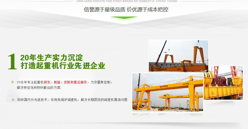 靖江市起重設(shè)備廠家直銷懸臂起重機(jī)、固定式懸臂起重機(jī)、單雙梁橋式起重機(jī)、簡(jiǎn)易門式起重機(jī)、電動(dòng)葫蘆門式起重機(jī)型號(hào)齊全,價(jià)格合理 - 座落在美麗富饒的江浙平原,魚米之鄉(xiāng)--江蘇省靖江市,位于長(zhǎng)江之濱。毗鄰江陰長(zhǎng)江公路大橋, 與江陰、張家港隔江相望,緊鄰上海、南京、蘇州、無錫等發(fā)達(dá)的大中城市,經(jīng)濟(jì)環(huán)境和地理位置得天獨(dú)厚。 緊靠京滬、寧通高速公路 公路和水路交通極為便利。